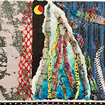 “Hey Dude”, 21” x 25”, mulberry and tissue paper, acrylic paint, oil pastel