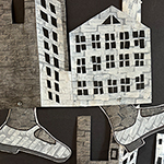 Shoe and building puppets, cardboard and acrylic paint approx. 16” to 20” high, for performance of “Shoe Story”