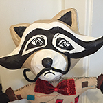 Racoon Puppet, 15” high, papier mache and fleece, for performance of “Free Jack and Zac”
